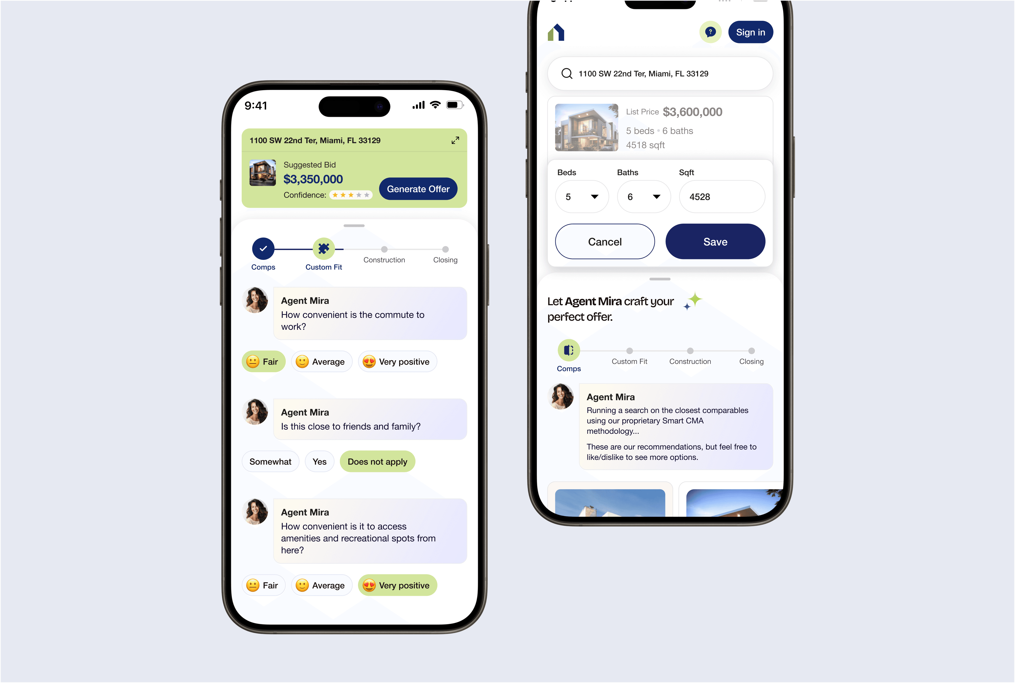 As part of the design process, the focus was on translating AI-driven functionality into a human-friendly interface. Through design research and UI design, the platform was shaped to present data, filters, and recommendations in a clear and intuitive way. The final experience balances smart automation with transparency, ensuring users feel confident and in control while exploring housing options